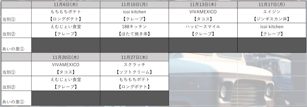 ■キッチンカー11月【当別・あいの里】