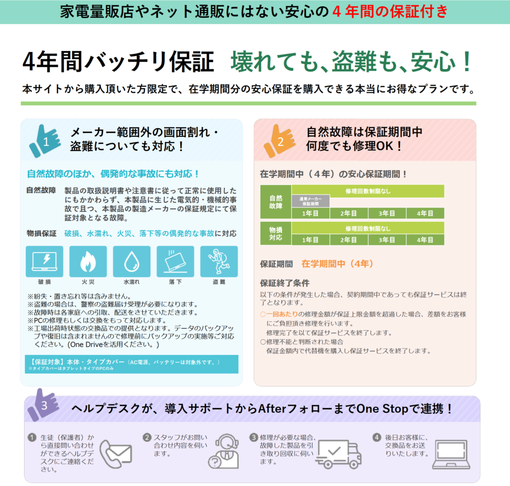 ※ネット、量販店では得られない4年間保証付きのモデルのため、多くの新入生に選ばれております。