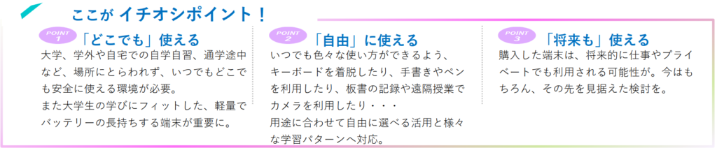 例年、入学生向けに大学での必要要件を満たす推奨PCの販売を開始し、大変好評を頂いております。